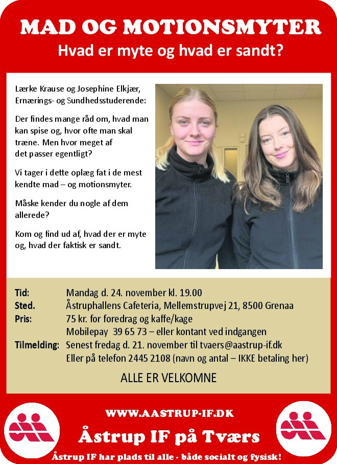 Åstrup På Tværs – Mad- og motionsmyter nov 18, 2025 | Arkiv, Åstrup på Tværs, Nyheder, Nyheds-arkiv Se opslaget for yderligere informationer